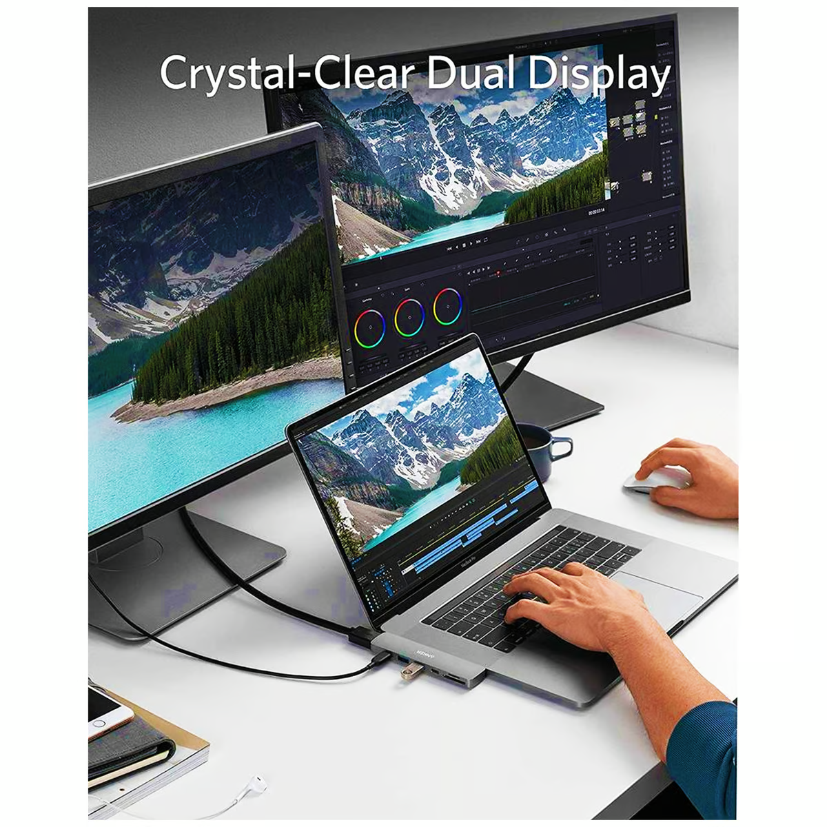 The multi-function USB-C port allows for unprecedented data transfer and charging speeds. You can also connect to 2 monitors simultaneously in 4K@60Hz via a USB-C to dual HDMI splitter (not included). Supports 5K@60Hz to a single monitor.
