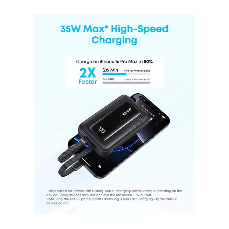 10,000mAh Portable Power: Perfect for travel, this compact power bank weighs only 7.65 oz. It provides 2 full charges for an iPhone 15, keeping your adventures powered without the bulk.
