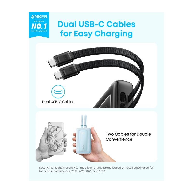 What You Get: Anker Zolo Power Bank (10K, Built-In 2 x USB-C), welcome guide.