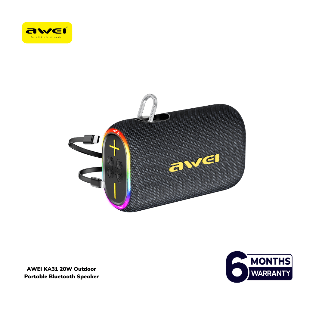 The AWEI KA31 Portable Bluetooth Speaker takes your music experience to the next level with powerful 20W output and dynamic RGB light effects. Lightweight, durable, and designed for modern users, it ensures immersive sound and a vibrant atmosphere wherever you go. Whether you're relaxing at home, hosting a party, or heading outdoors, this speaker delivers rich audio performance with stylish lighting to match your vibe.