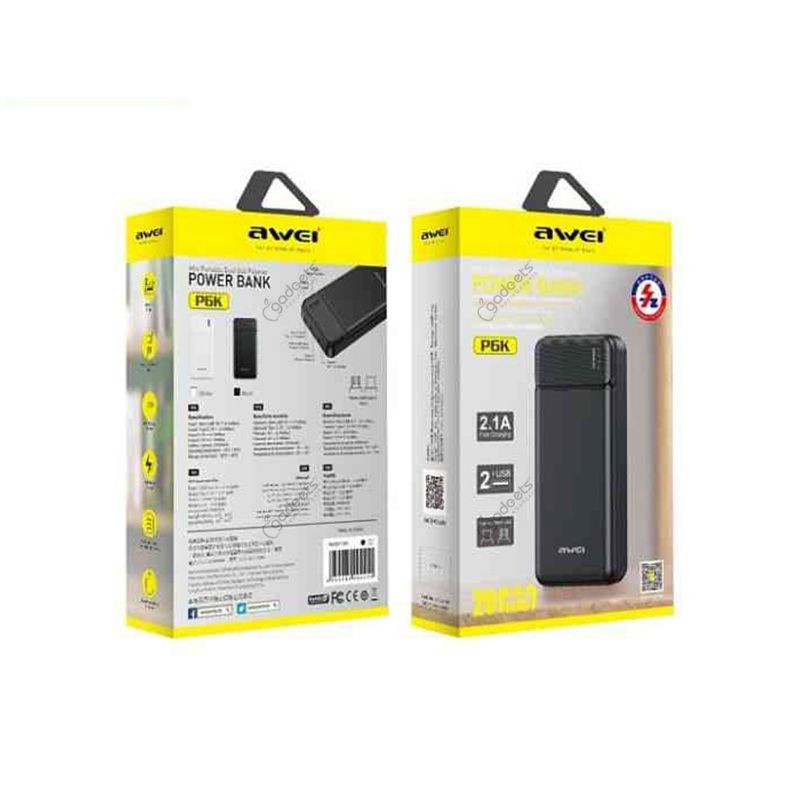 • own Bank App|High Capacity Battery:Equipped with a 20000mAh Polymer Cell, the Awei P6K ensures long-lasting power for your devices.