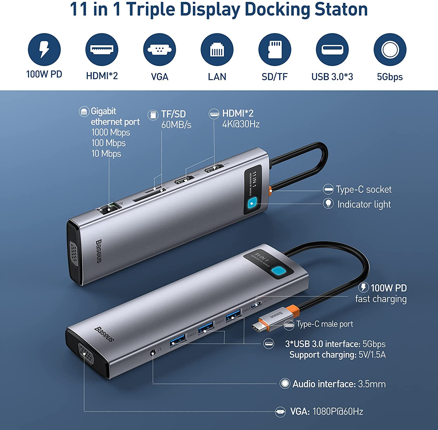 Baseus Metal Gleam Series 11-in-1 Multifunctional Type-C HUB Docking Station 2Baseus Metal Gleam Series 11-in-1 Multifunctional Type-C HUB Docking Station 3