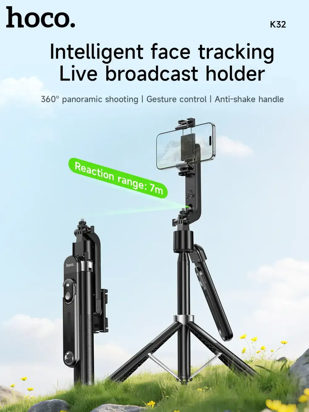 The HOCO K32 Smart Stand is a versatile and reliable solution for creators who need stable support for smartphones during live streaming, video recording, online classes, or content creation. Designed with adjustable angles and strong material construction, it gives you professional-level stability and flexibility. With a smart, ergonomic structure, the stand enhances your shooting setup, allowing hands-free use and better camera positioning. Whether you’re a beginner or experienced creator, the HOCO K32 ensures smooth, convenient, and high-quality broadcasting.