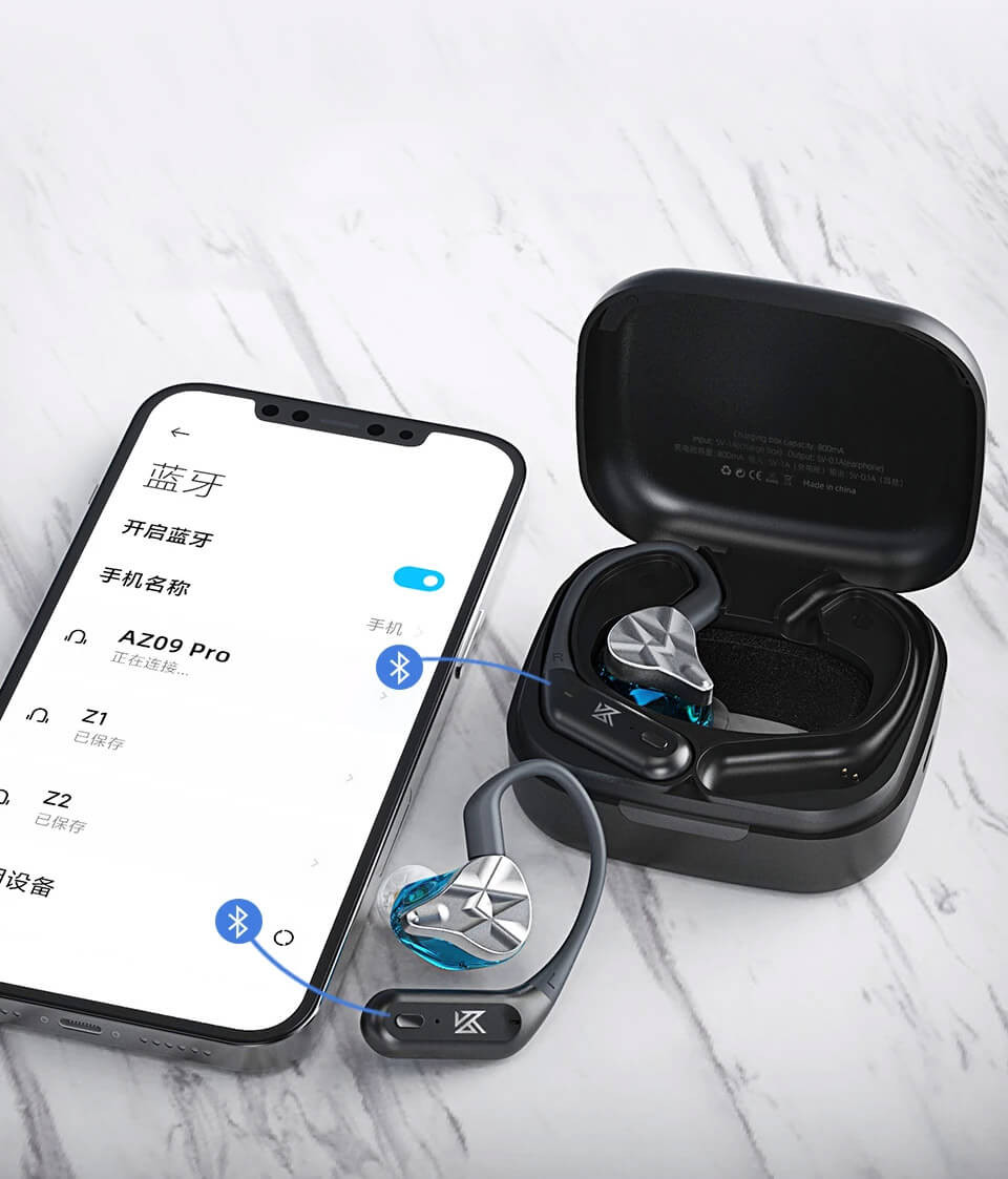 The left and right ear hooks KZ AZ09 Pro connect directly to the mobile phone. Compared with the transmission technology of the main and auxiliary earphones, the dual transmission delay is lower, and the response is faster.
