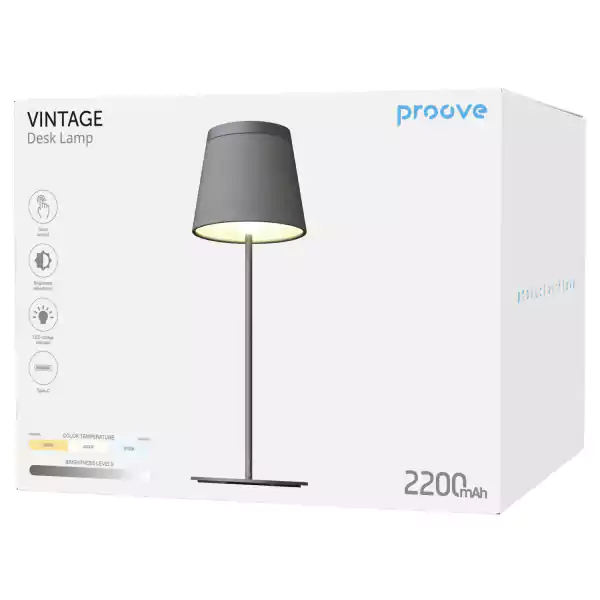 Illuminate your space with the Proove Vintage 2200mAh Desk Lamp, a perfect blend of classic design and modern functionality. Featuring a built-in 2200mAh rechargeable battery, this lamp offers cordless convenience and long-lasting light wherever you need it. Its warm vintage glow adds a touch of elegance to any desk, bedside, or reading nook. The adjustable brightness levels let you create the perfect ambiance for work, study, or relaxation. Crafted with durable materials and a timeless design, the Proove Vintage Desk Lamp combines style, portability, and practicality for any modern home or office.