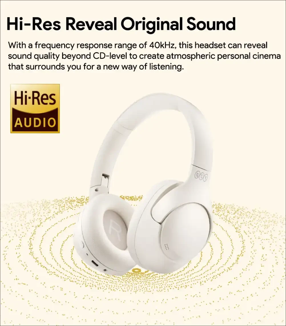 • The QCY H3 goes beyond conventional sound quality, boasting a frequency response range of 40kHz. This enables the headphones to unveil audio details beyond CD-level, creating a captivating personal cinema experience. The custom oversized 40mm dynamic drivers ensure Hi-Res Audio production, delivering exceptional sound quality across various genres.
