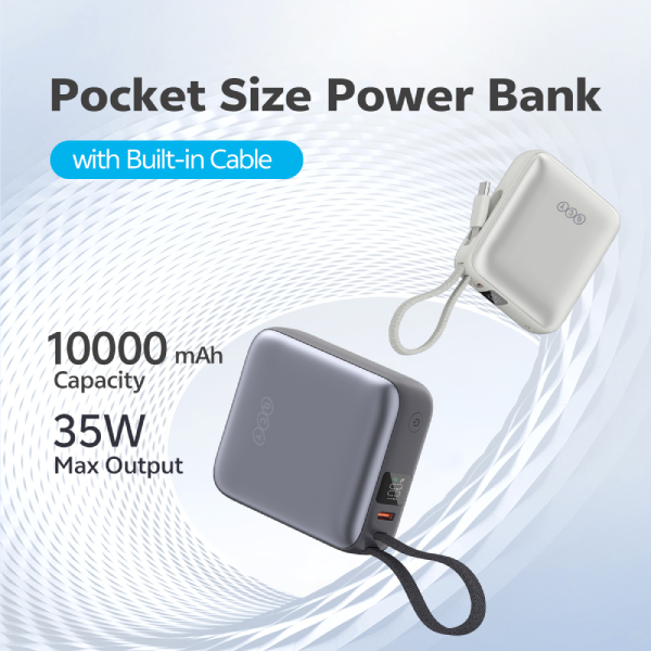 The QCY PB10C 35W PD Power Bank is a super-compact yet powerful portable charger designed for fast charging on the go. With a 10,000mAh capacity and 35W USB-C PD output, it quickly charges smartphones, tablets, and even some laptops. Its ultra-mini design fits easily in pockets or bags, making it perfect for travel, work, and everyday use.