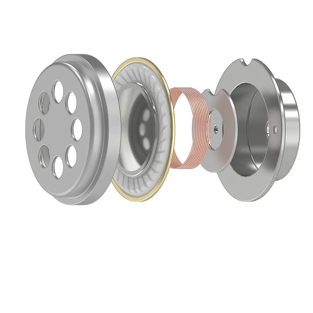 The diaphragm of ZERO uses the composite diaphragm commonly used in high-end flagship earphones, and the composite structure is made of flexible ultra-fine fiber suspension and beryllium-plated dome, which delivering ZERO a wide bandwidth. TANCHJIM Acoustic R&D Department has been upgraded based on DMT@4 dynamic driver loudspeaker, and adopted FEA finite element analysis software to simulate and analyze the driver data, optimizing the waveguide structure, strengthening the magnetic circuit, reducing the suspension quality, and adjusting the rigidity of diaphragm, ensuring ZERO has a wide dynamic performance, delicate high frequency and compact bass frequency. ZERO has objective indicators comparable to flagship in-ear HIFI earphones, and provides the lower nonlinear distortion (0.054%@1KHz 94dB) thanks to the new generation DMT driver.