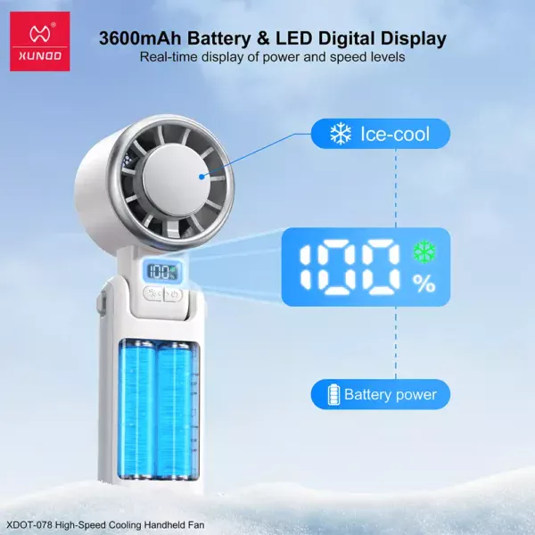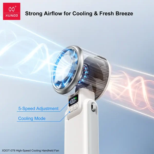 The XUNDD XDOT-078 High-Speed Cooling Handheld Fan is a compact and reliable solution for personal cooling. Powered by a high-speed motor, it delivers steady airflow to keep you comfortable during hot days, travel, or outdoor activities. The built-in rechargeable battery supports cordless use and convenient USB charging from power banks or laptops. With multiple speed settings and an ergonomic, lightweight design, it’s easy to hold and carry, making it a practical cooling companion wherever you go.